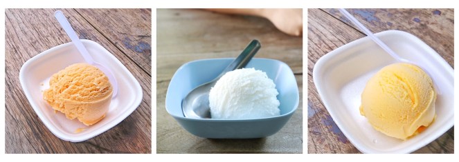 圖上左中右分別是泰式奶茶、椰子和芒果口味,大推泰茶,真的像在喝泰式奶茶一樣,味道十分濃郁;芒果口味正正常常,沒有普通機製雪糕那明顯的人工香精味道,取而代之的是淡淡的芒果味,質感較實身,價格也比椰子和泰茶略貴,售 THB 50。