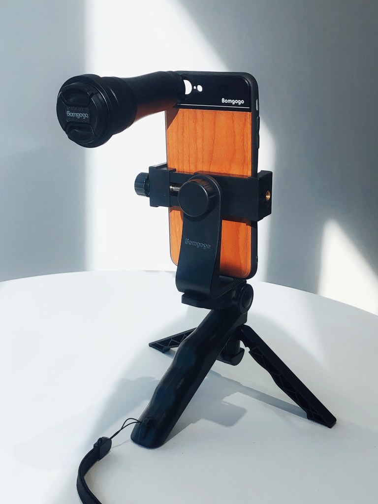 使用TL2長望遠手機鏡頭組,最重要是手要定。鑑於知道大家都會手震 (誤),Bomgogo很佛心地隨鏡附送一個輕便得很的T2腳架,組合好是下圖的模樣: