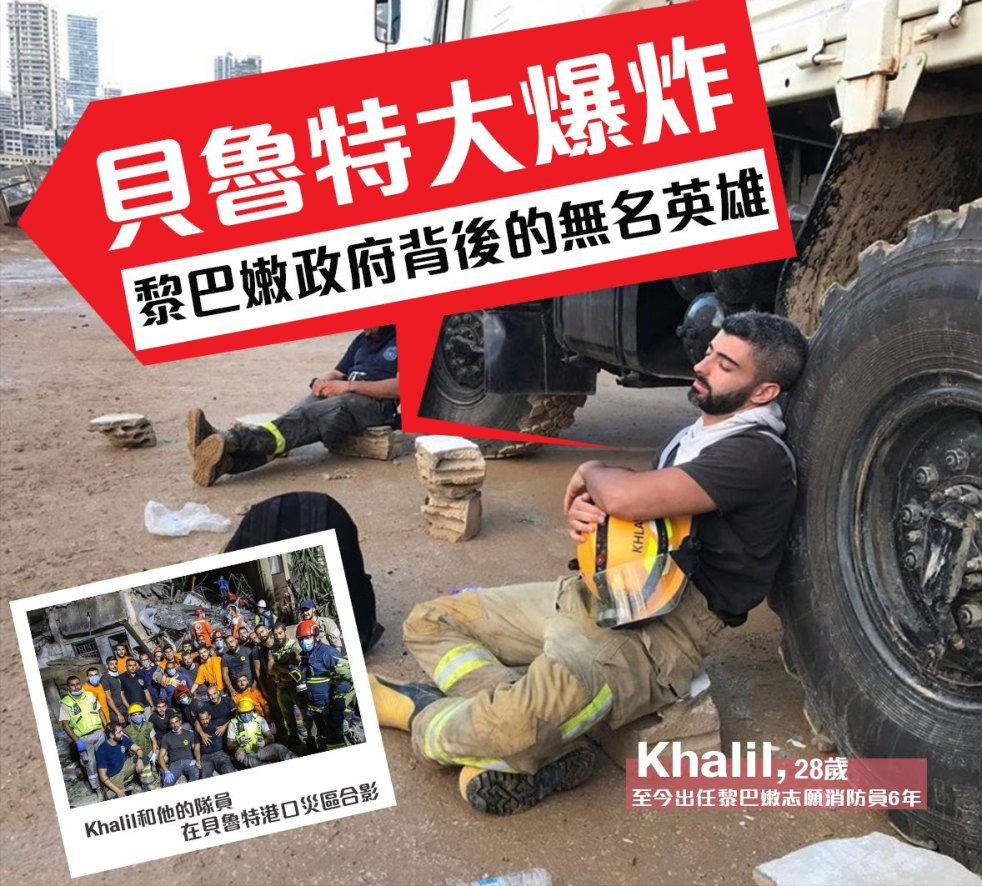 這場震動全國的大爆炸肇事起因是貝魯特港口的一場大火,在貝魯特的消防員忙於救火時,猝不及防又來一場威力相當於10顆戰術核彈的大爆炸,12位正在港灣區救災的消防員罹難,首都淪陷,政府調配其餘外省消防救災隊伍前往首都救災。